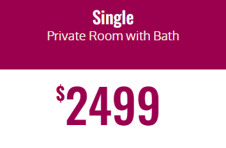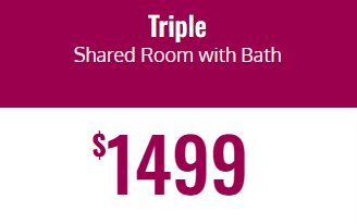- Includes: Shared accommodation for three with ensuite bath, all program access and 3 vegetarian meals/day.